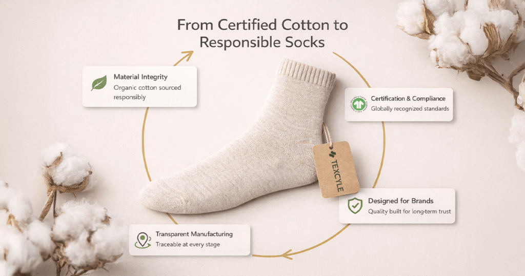 If you’re looking to build or scale your sock brand with a trusted, ethical, and certified partner, Texcyle is here to help. 📧 Email us at: info@texcyle.co
